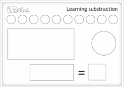 | Substraction trainer Benefit of this training tool is that it is possible to use a huge number of objects instead of counters, including the plastic animals from a farm and a toy from a kinder surprise, and as "receiver" of objects it is possible to imagine any improbable adventures. Counters can take away alien plates, run away in the wood, get ready for parties, take exams in singing and other. So, arrange 10 counters-objects on the upper 10 circles. Put an object-receiver on a big round field. Think out fantastic plots and play table theater: "6 princes arrived to a ball (move counters from above in the field of "was totally"). Three of them went to save the princess. How many princes left to dance on the ball?". If you print a field on color paper and laminate it, if you laminate it will be possible to write with a marker on it and remove what you wrote. On the color illustration we signed fields that the scheme of a game was clear, but you shouldn't do it on your game field, in order not to remind the child a purpose of your occupation. |